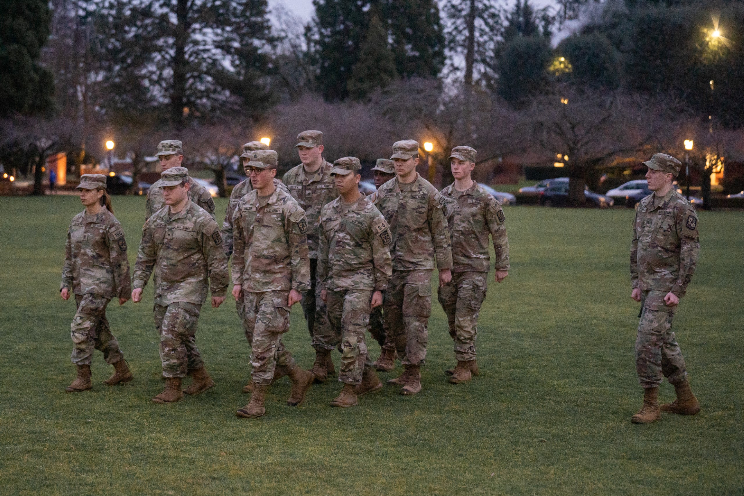 Cadets attend classes like their fellow students, but their schedule includes an augmented exclusive course on leadership offered by the military science department and the 300-level American Military History to satisfy their ROTC course requirements. Cadets attend the following courses: