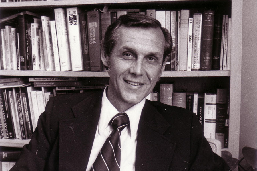 James Thayne Covert, Ph.D., professor emeritus in history at the University of Portland, died at his home on Thursday, October 13, of complications from a stroke. He was 84 years old. A funeral Mass will be held on Friday, October 21, at 11:00 a.m. at Saint Pius X Catholic Church, and a rosary will occur the night before at 7:00 p.m. in Saint Pius’ Community Center. The church is located at 1280 NW Saltzman Road.