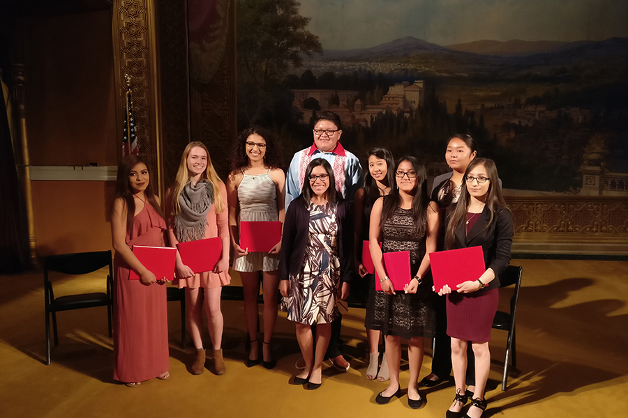 [Photo credit, left to right: (back row) Vanessa Juarez Morales, True Overlie, Daniella Perez, Sonny Ray Olguin, Pema Dema, Devonna Begay; (front row) Cassy Esparza (UP Admissions Counselor), Angelina Henry, Daniela Salas