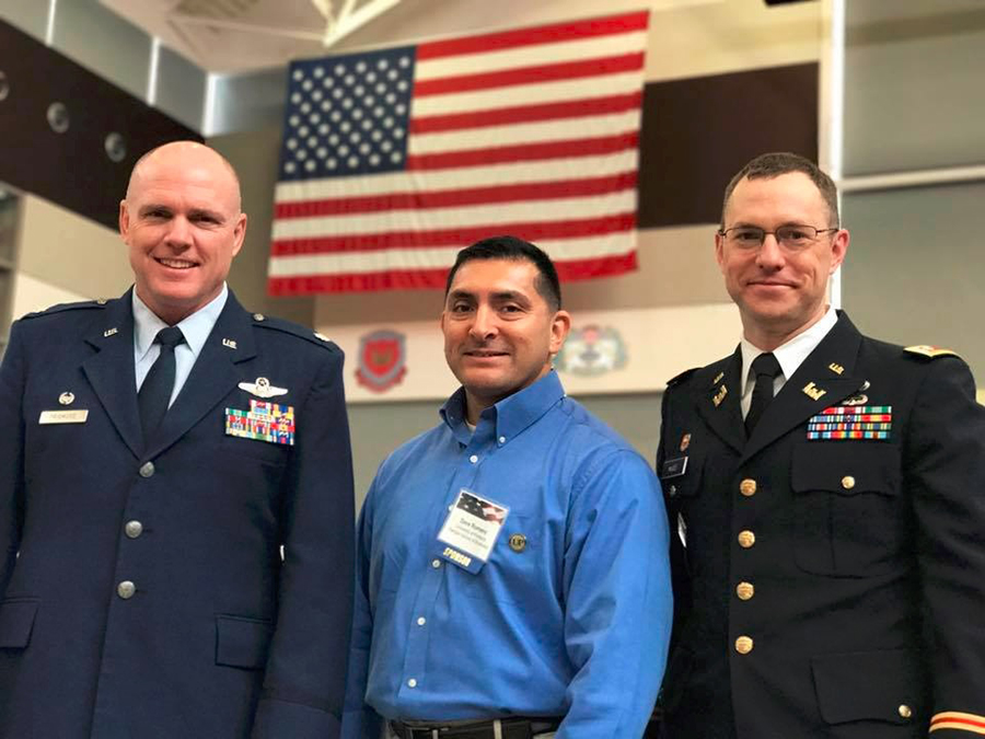 [photo, left to right: Lt. Col. John Prigmore, Oregon Air National Guard; David Romero, Army ROTC, University of Portland; and Lt. Dennis McGee, Professor of Military Science, University of Portland]