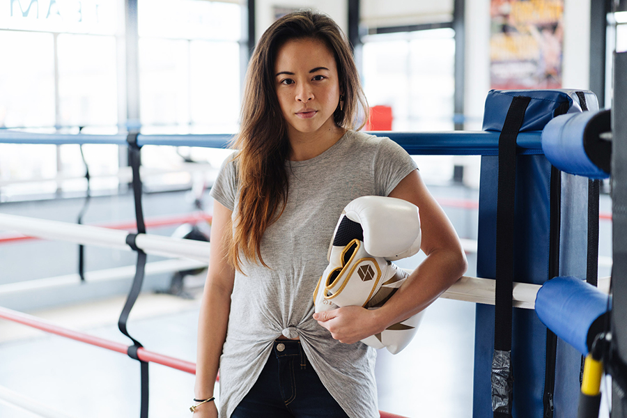 Entrepreneur and sports marketer Lynn S. Le ’11 (photo by Isaac Lane Koval), has been named to Forbes Magazine’s “30 Under 30 Retail and E-Commerce Class of 2018.” A longtime devotee of boxing and mixed martial arts, Le was inspired to launch Society Nine, a high-performance boxing glove business exclusively for women, in 2015 after she discovered the only gear and apparel built for fighting sports was designed for men and didn’t fit her or other women combat fitness fighters.