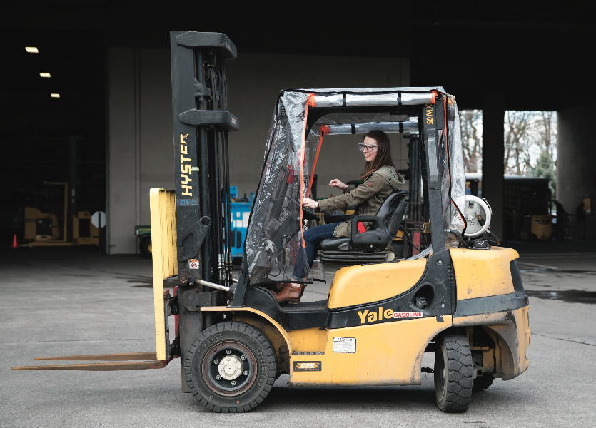 Hyster-Yale Group design engineer Jimmy Anderson ’14 is working with mechanical engineering students to develop an alternative steering design for forklifts. The team hopes to create a smaller and less obtrusive steering wheel.