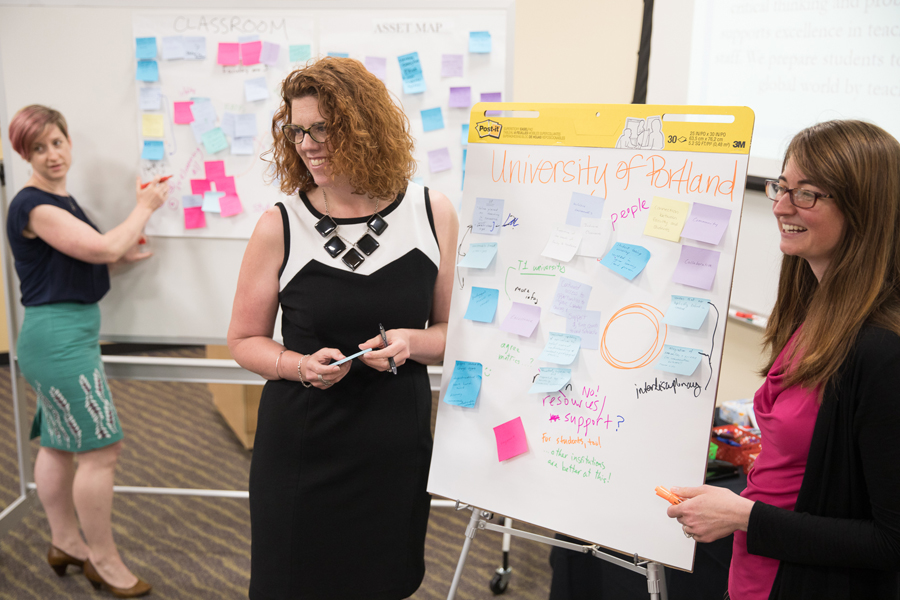 Salomone has always been passionate about mathematics. But she recounts that, “every single math class I’ve ever taken, I have been lectured to. I’ve never had a collaborative, student-centered math class.” In 2016, Salomone attended a conference on evidence-based instructional practices along with fellow UP faculty members Valerie Peterson, Ph.D., associate professor of mathematics, Carolyn James, Ph.D., mathematics instructor, and Heather Dillon, Ph.D., associate professor of engineering. Following the conference, this group expanded their team, inviting Tara Prestholdt, Ph.D., associate professor of biology, and Eric Anctil, Ph.D., associate professor of education to join them in pursuing a grant aimed at improving undergraduate STEM education at UP by increasing student-centered, evidence-based learning.