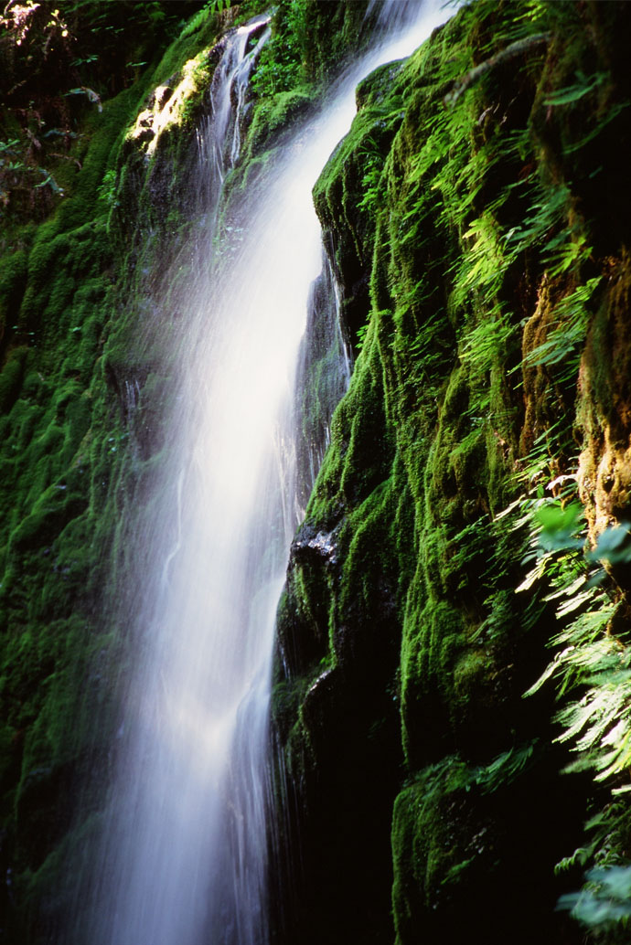 Bryant broke through underbrush and stormed up a steep hill. I tried to mimic him but kept slipping to the bottom. When I reached the top, panting, he told me we’d gone the wrong way. Time to turn around. He backtracked, confident as he struck out on another route. I tripped over a root. He scurried up a ridge. I crawled on my knees. He salamandared over a damp, enormous rock and disappeared. I cursed his name. Too far in to turn around, I kept going, exasperated and winded. Just when I was ready to give up, I heard, off to the left, water. I slid into a small crevasse and hoisted myself up the other side. By then I could feel the temperature drop. I snaked around a tree and stood slack-jawed at a waterfall nearly 100 feet high. The water tumbled over the edge in a riotous ivory plume. Droplets misted my glasses.