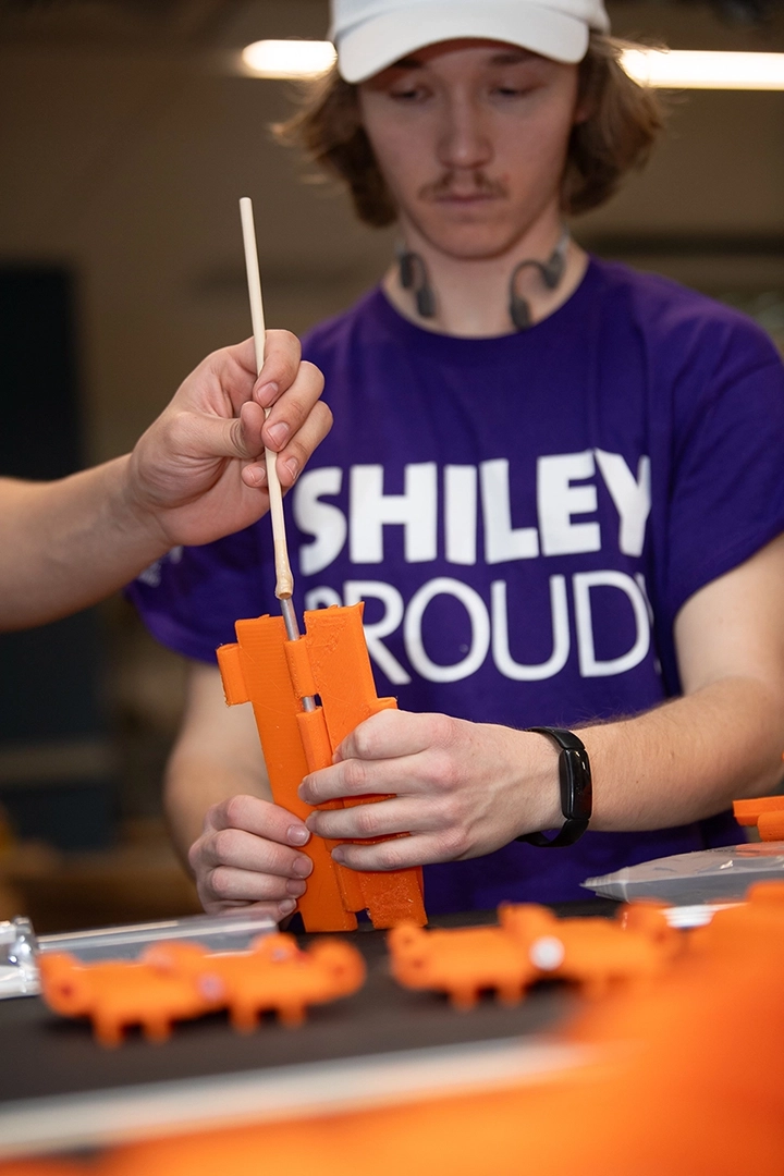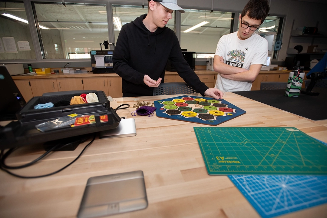 “If you have an idea and you want to bring it into reality, this is the place to do it,” says mechanical engineering major Zach Gerards, who also works a shift in Donald’s Garage. “It’s the best place to come and be creative.” Gerards recently created a version of the game Settlers of Catan with small magnets on each of the pieces, so they wouldn’t fall off the table during play. Another student took what he learned from his circuitry class and made a motorized skateboard. The Robotics Club is creating the treads for a newly designed lunar surface vehicle.