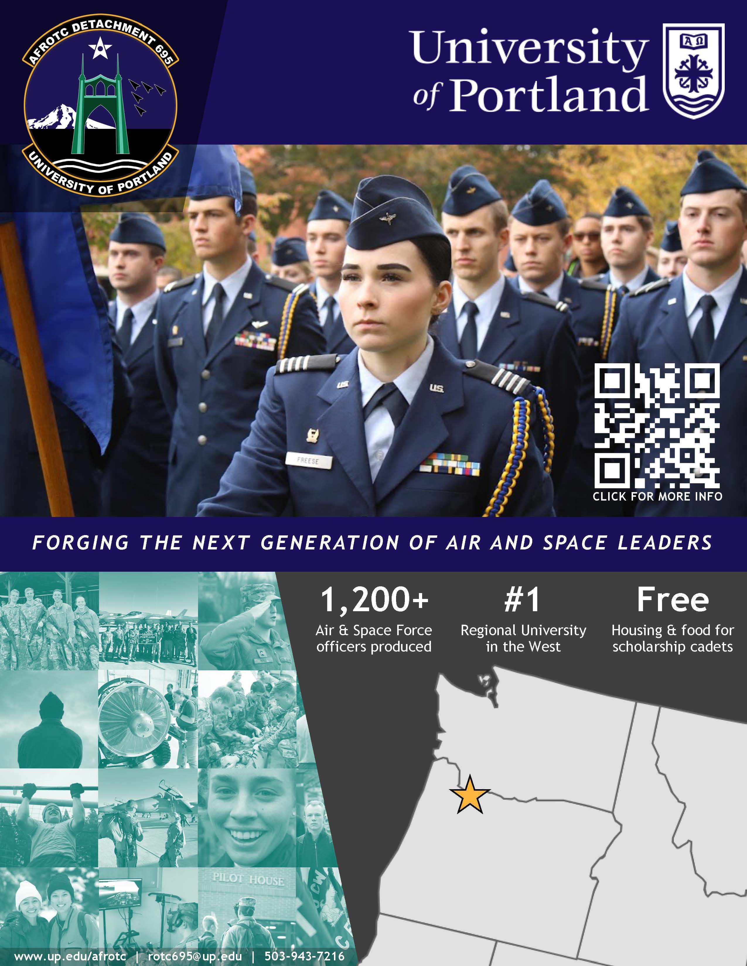 If you are interested in the Air Force ROTC program, contact rotc695@up.edu for information and instructions about registration and orientation. First-year students participating in ROTC will be signed up for two Aerospace Studies & Leadership courses in the first semester. Physical training is included in the Leadership Laboratory.